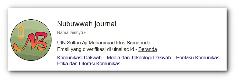 Nubuwwah adalah jurnal karya ilmiah dalam bidang komunikasi dan penyiaran Islam yang diterbitkan oleh Program Studi Komunikasi dan Penyiaran Islam (KPI), Fakultas Ushuluddin, Adab, dan Dakwah (FUAD), UIN Sultan Aji Muhammad Idris Samarinda.